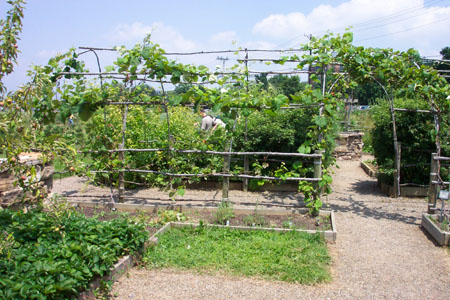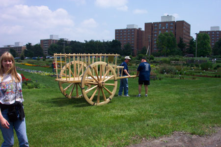 Left: Dr. Ziegler and Dr. Arnold admire the cart. Right: The Penn State Medieval Garden.