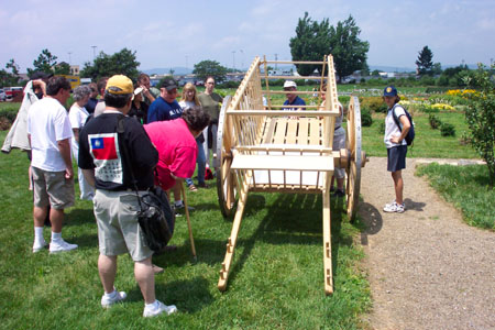 Left: Cart is pulled to the PSU Medieval Garden. Right: NEH participants ask questions.